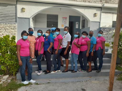 their own families, since half of the staff lost homes and some lost family members in the quake. Midwives for Haiti midwives also have family in the area and some graduates are non staff at MN. In other words, they are there for each other no matter what, which is at the heart of the Compassionate Birth Network! The MFH team is in their signature color of pink.